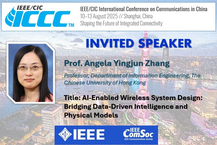 Prof. Angela Yingjun Zhang, the Project Investigator of Hong Kong 6G AoE, delivered the invited talk with title “AI-Enabled Wireless System Design: Bridging Data-Driven Intelligence and Physical Models” at the IEEE/CIC International Conference on Communications in China (ICCC) 2025 in Shanghai, China.