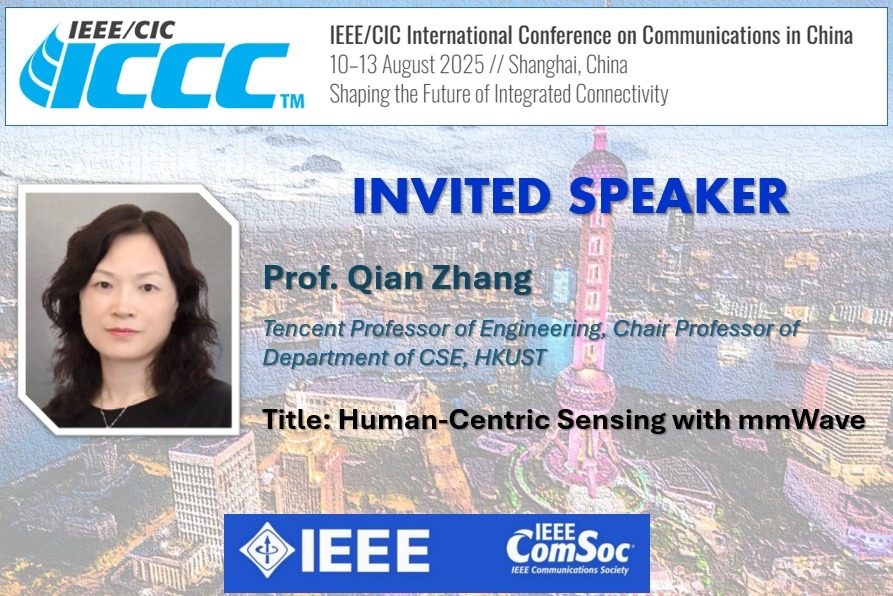 Prof. Qian Zhang, the Project Investigator of Hong Kong 6G AoE, delivered the invited talk with title “Human-Centric Sensing with mmWave” at the IEEE/CIC International Conference on Communications in China (ICCC) 2025 in Shanghai, China.